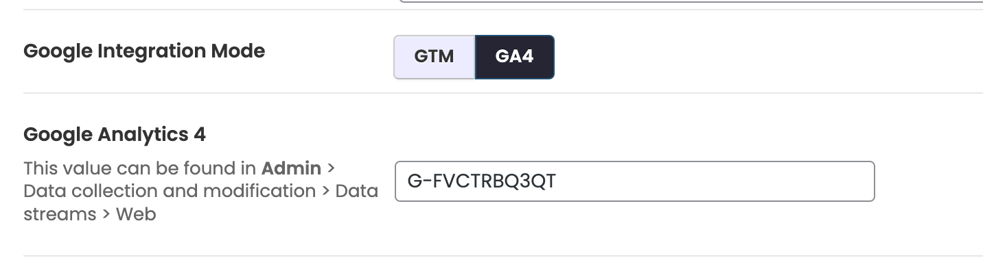 Bajo la opción Modo de integración de Google, puedes elegir entre Google Tag Manager o Google Analytics. Por favor, selecciona Google Analytics.