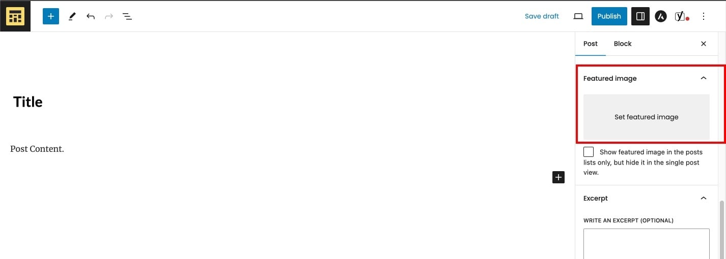 Añade la imagen destacada en la barra lateral derecha del editor de publicaciones, en el espacio resaltado a continuación.