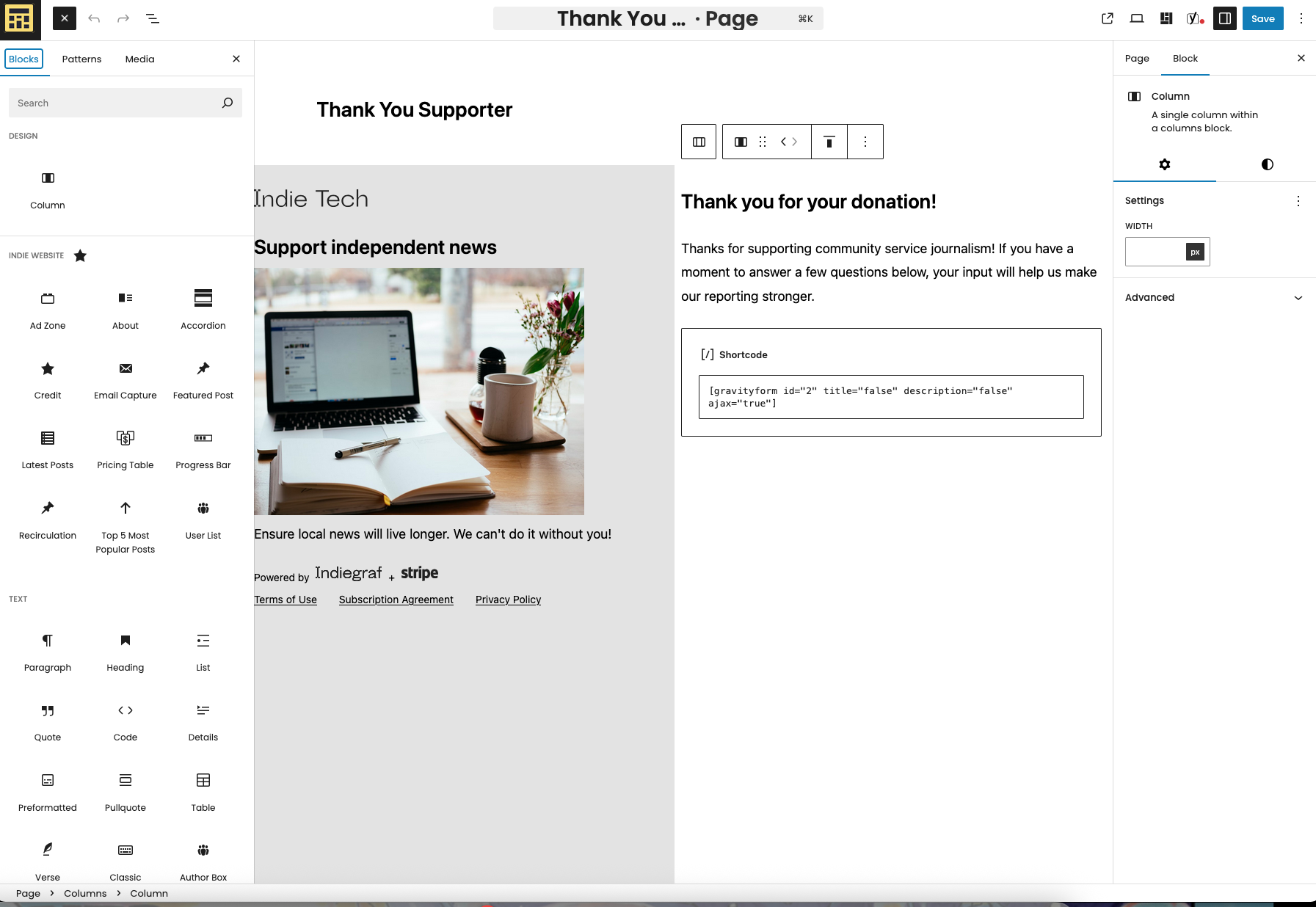 Aprende cómo recopilar comentarios e información de tus donantes añadiendo un formulario a tu página de agradecimiento en Indie Website.