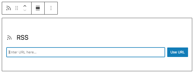 El bloque de RSS te permite mostrar entradas de cualquier fuente RSS o Atom. Esto es ideal para mostrar las campañas más recientes de tus boletines informativos, por ejemplo. Simplemente pega la ubicación de la fuente en el campo de URL del bloque y haz clic en el botón Usar URL. Siempre que la URL que proporciones sea válida, el bloque se transformará para mostrar la fuente elegida.