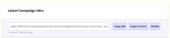 After creating a link, it will also appear in your recent campaign URLs list for quick reuse.
