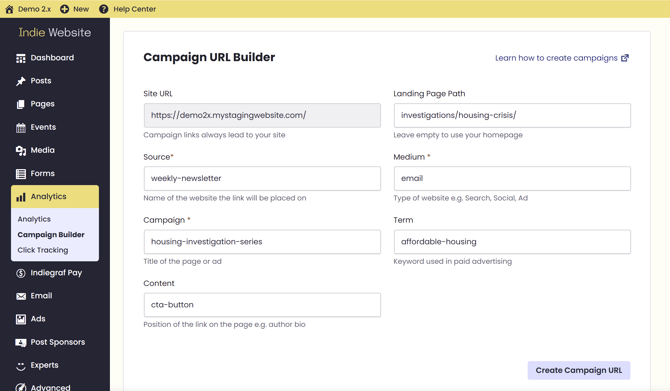 Even if you create campaign links through external platforms like email marketing or advertising tools, Independent Analytics can still track them.