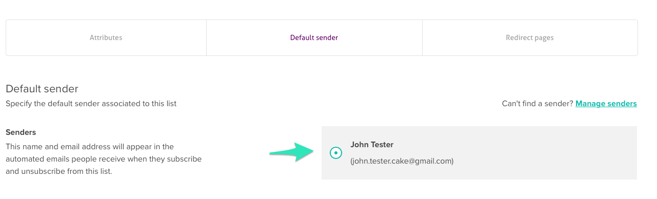 7. At the Settings tab, specify the Default Sender, from which address this list should be sent by default.