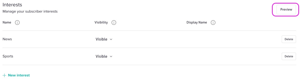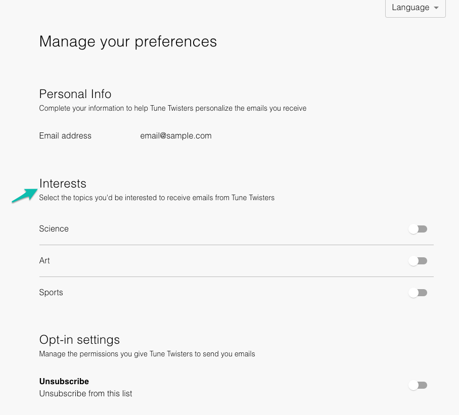 A preference center is a tool that allows your email subscribers to select the types of content they want to receive from you.