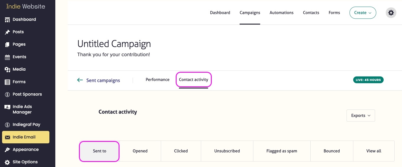 Navigate to your Campaign > Contact Activity > Sent to and check if the contact is present in your list. If the email wasn’t sent, it’s likely due to an issue with the contact’s status.
