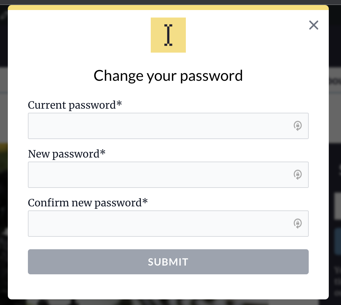 A modal will appear. Fill out the fields with the Current password, New password and Confirm new password
