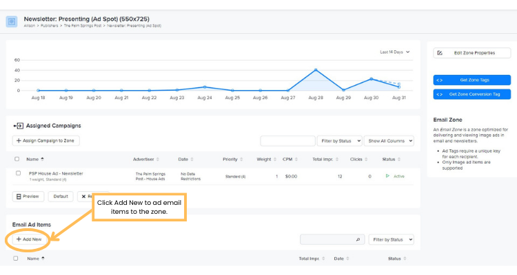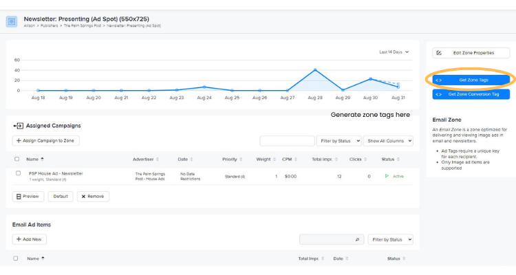 ✨ You can also create an advertiser campaign and assign them to your email ad zone. As with individual ad items, campaigns for emails must include image ad items.