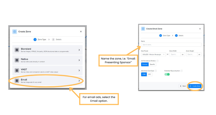 Step 1: Create an email ad zone