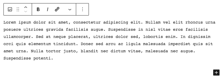 The paragraph block allows you to create a single paragraph of text. Each paragraph forms a separate block, so new blocks are automatically created when you hit the Enter key as you type.