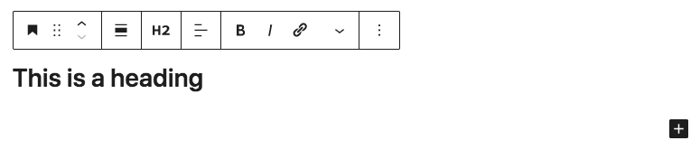 The heading block allows you to insert a heading. By default, the heading will be H2 but you can change this by clicking the H2 icon in the toolbar and selecting a different heading level.